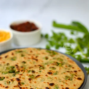 Firstly make a dough with whole wheat flour and cover it then leave it for some minutes. Now heat oil in a pan and add coriander powder, ginger, peas, salt, and red chilli powder roast it and cover it for 1 minute. When the peas are cooked mash them a little bit and then add paneer, and green chilli and mix all of them until the stuffing is ready. Now we take the dough and roll it thick and put the stuffing on it then pack it. Then again roll it with free hands and bake it on the tawa from both sides then serve it with ghee, butter or curd.